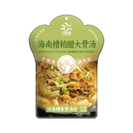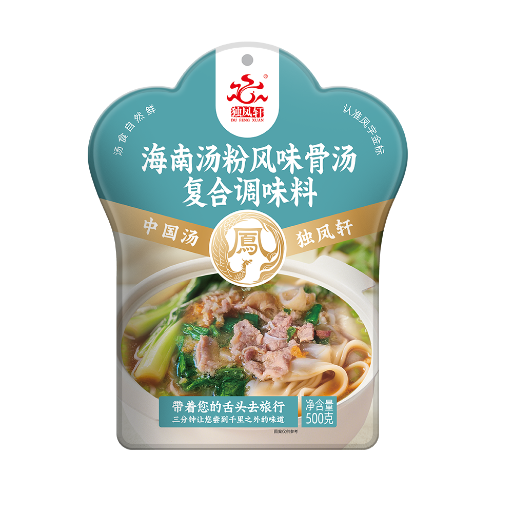 甄选鲜冻猪骨与鸡骨,浓缩蛤蜊汁为主要原料精制而成。汤底不仅骨香浓郁,还具有海鲜的鲜美滋味。完美复刻地道海南汤粉的经典滋味。无论是搭配米粉、面条,还是用于炖菜,都能轻松为餐桌增添一抹浓郁鲜香。